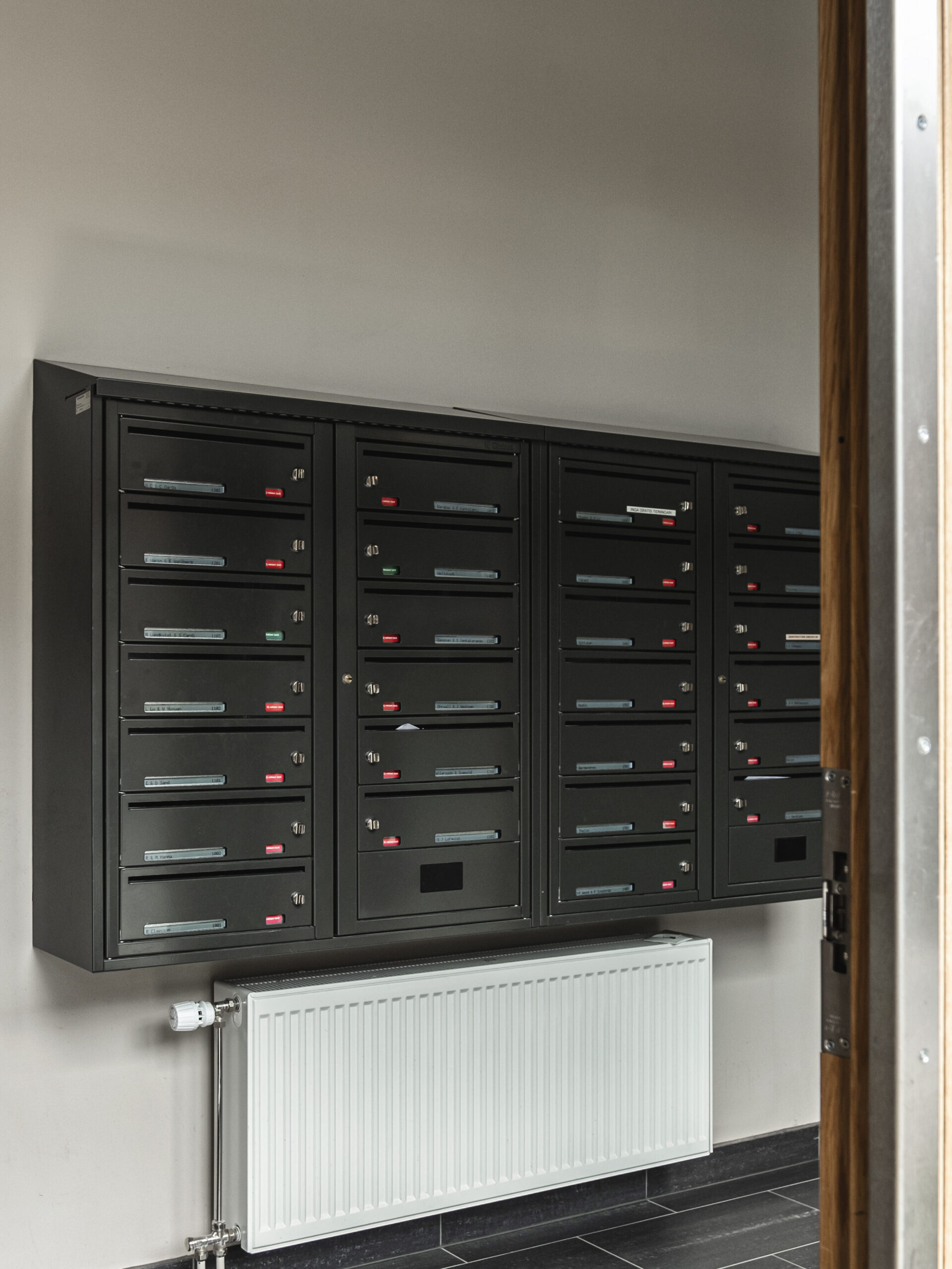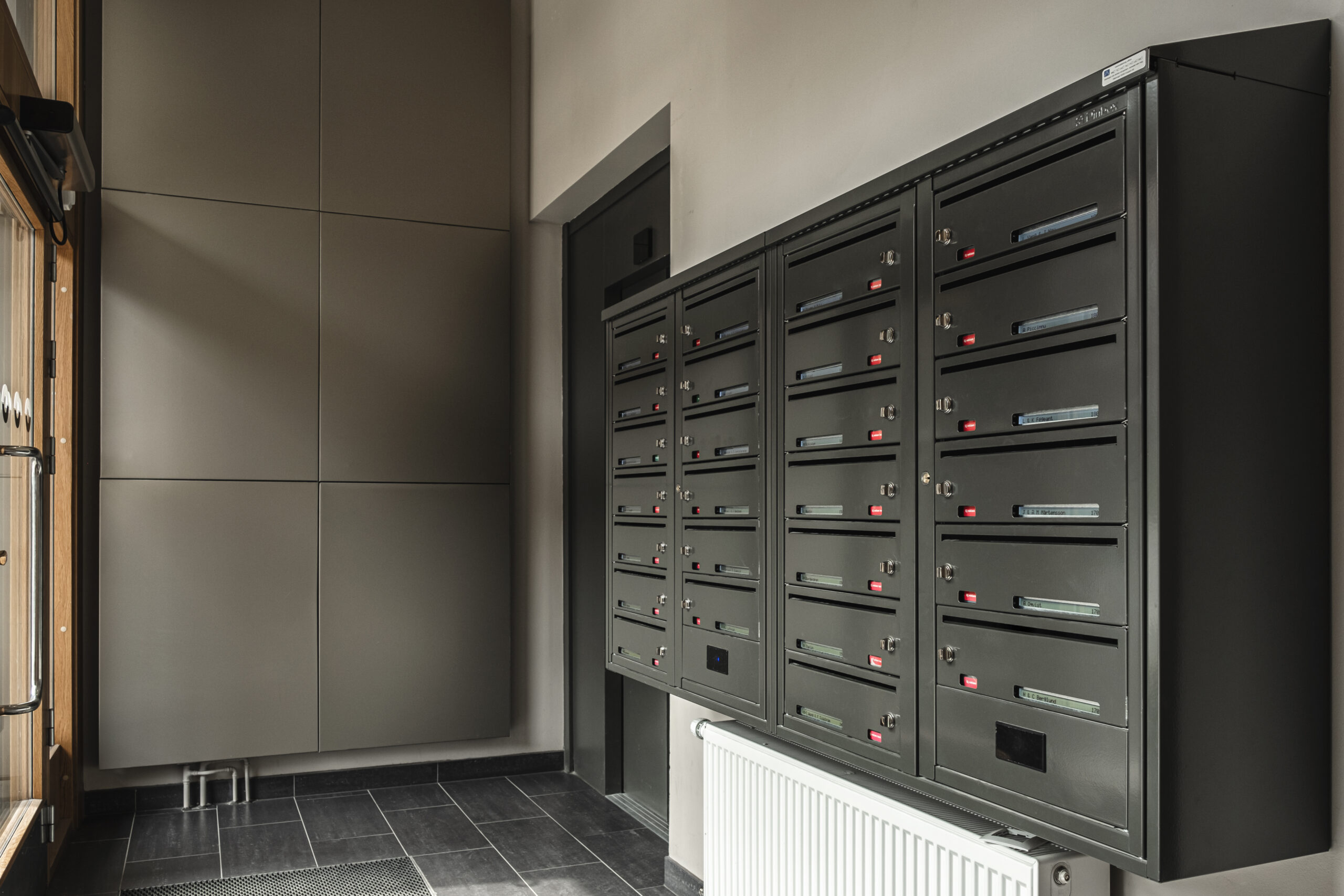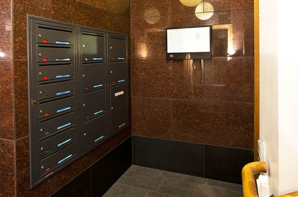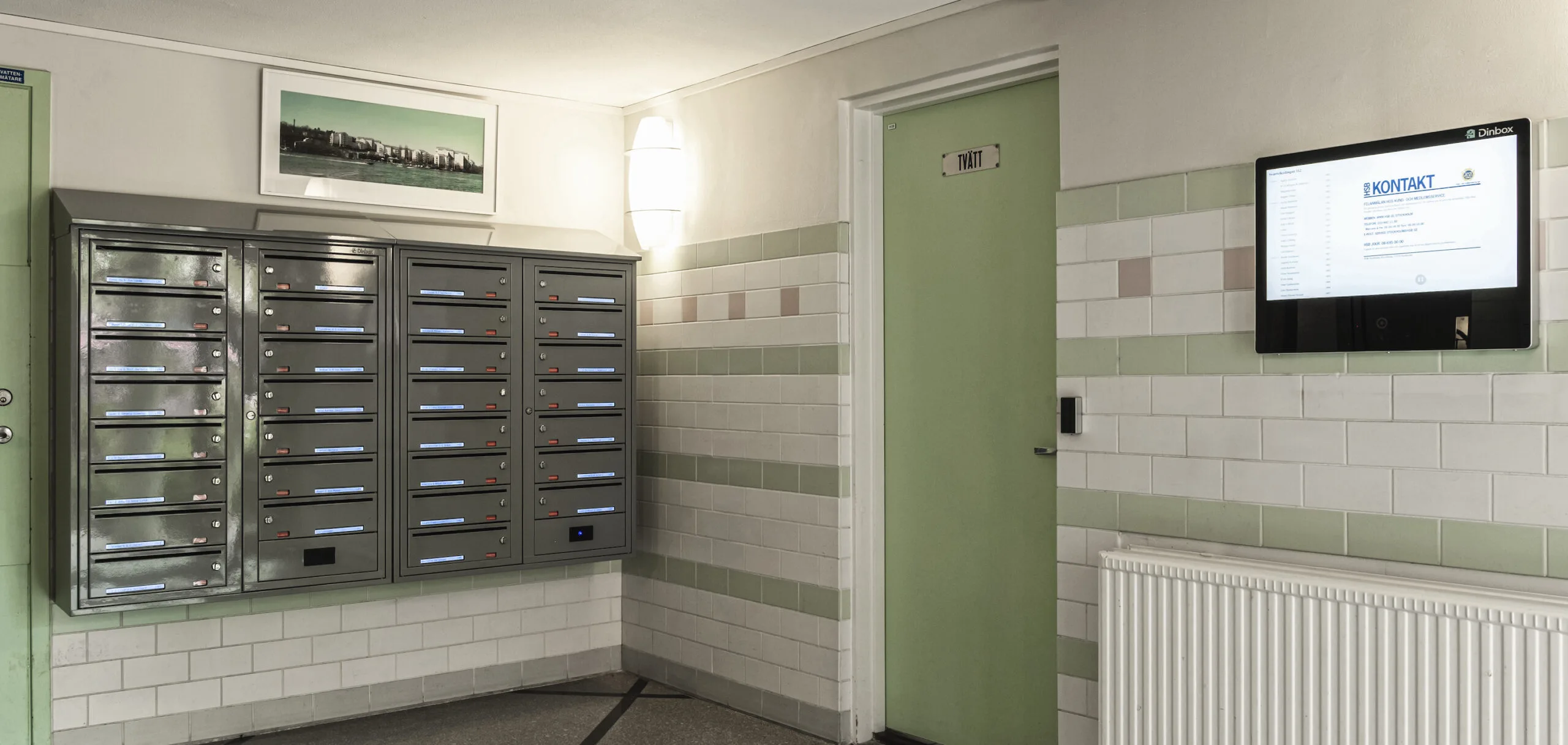 I Stockholm hittar vi BRF Kristallen som har installerat Dinbox fastighetsbox Svenskboxen Kompakt i mässing som är inbyggd i entrén. Även digitala namnskyltar...