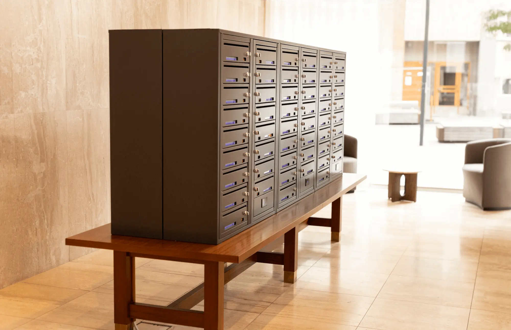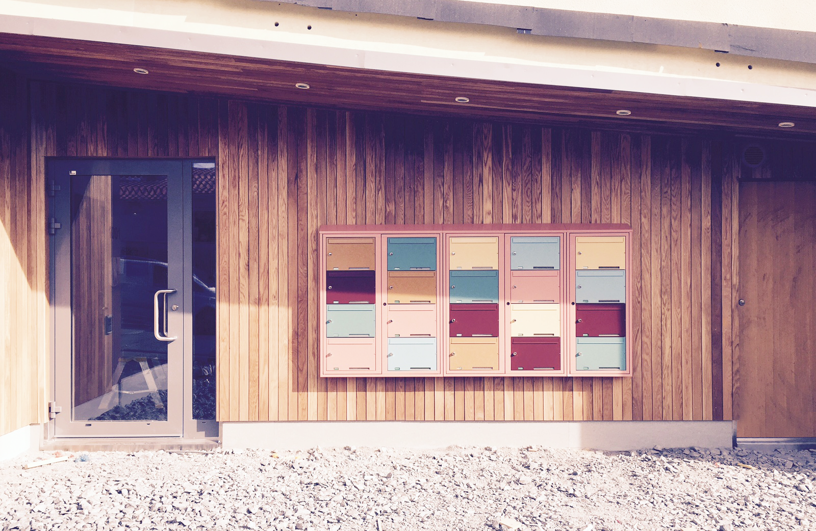 BRF Vintergatan 3 Stockholm BRF Vintergatan 3 Sundbyberg är ett område i norra Stockholm som expanderas snabbt. BRF Vintergatan 3 har installerat Dinbox fastighetsboxar där de är placerade på träbänkar med skinn-sittbädd bredvid. Dinbox Kompakt Analog i färgen Skiffergrå (RAL 7015). Produkter