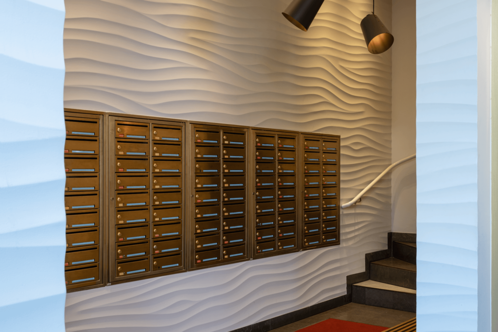 I Stockholm hittar vi BRF Kristallen som har installerat Dinbox fastighetsbox Svenskboxen Kompakt i mässing som är inbyggd i entrén. Även digitala namnskyltar och Wallpad finns hos föreningen!