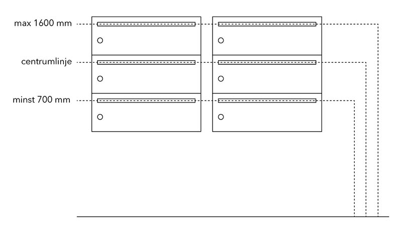 Har fastighetsboxen bara en rad med fack rekommenderas det att inkasten placeras på 1000 mm höjd från golvet.