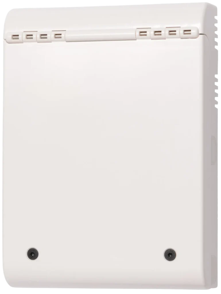 Den universella centralenhet som passar till alla Dinbox elektroniska produkter. Centralenheten kan styra dörrar eller fastighetsboxar och har utgångar för tryckknappar, elslutbleck och dörrautomatik. Kan även monteras internt i fastighetsbox. Centralenheten strömförsörjs via PoE och behöver således endast nätverkskabel.